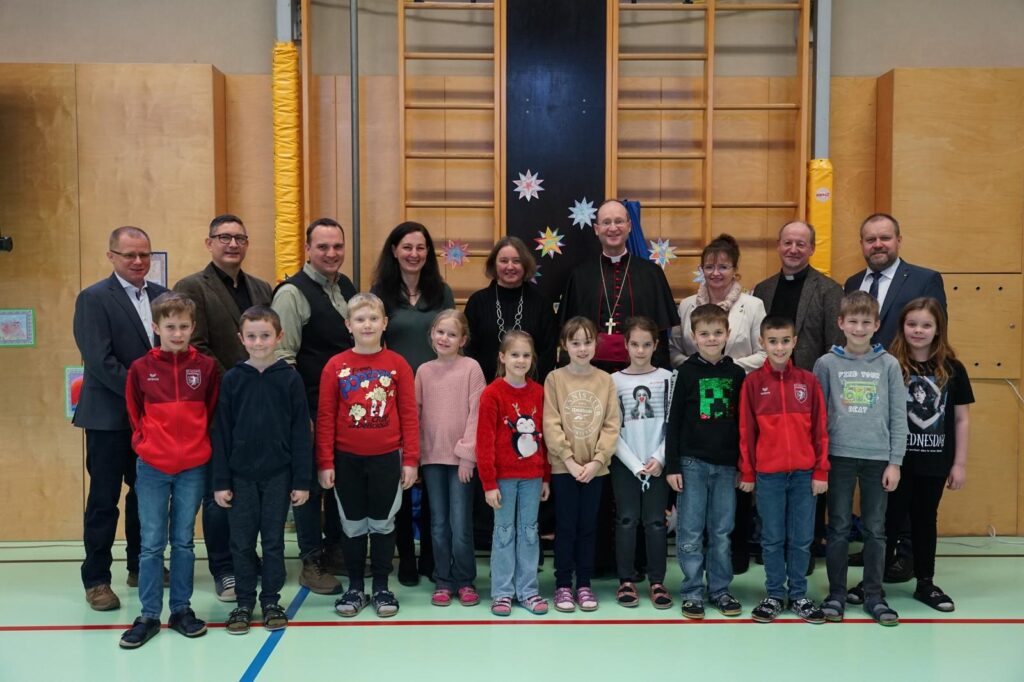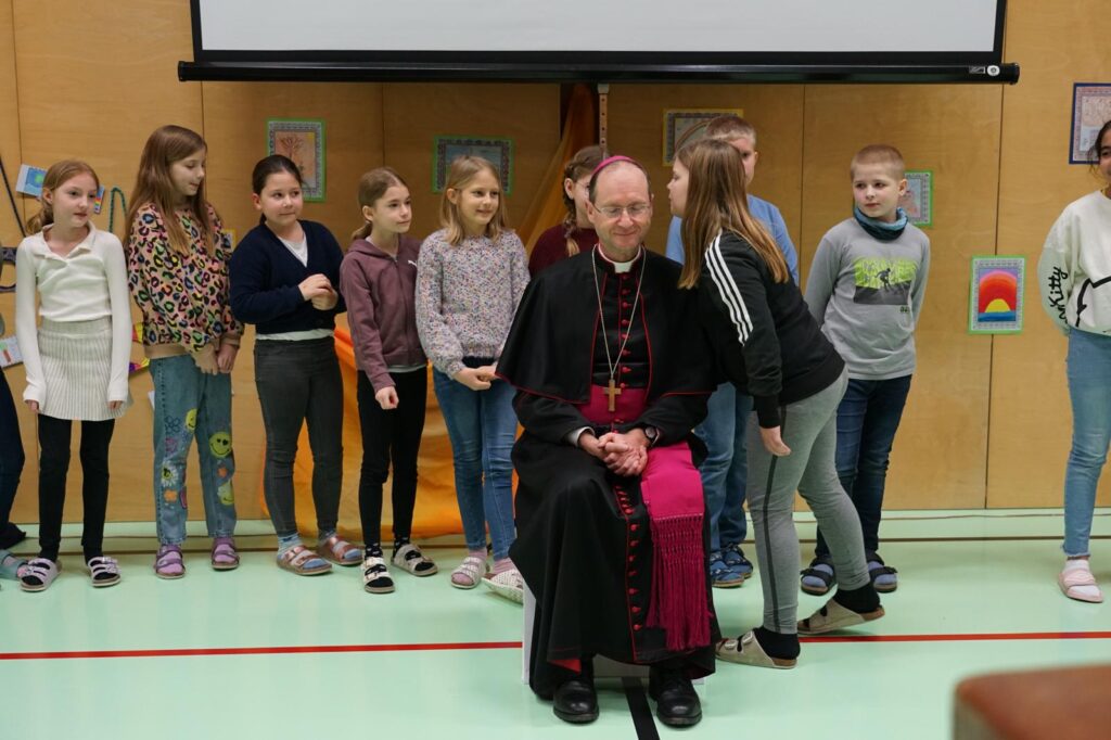 Besonders beeindruckt zeigte sich Weihbischof Turnovsky von den Fragen der Kinder, die sie ihm zu persönlichen und tiefgründigen Themen stellten. In seiner Ansprache ging er auf die Bedeutung dieser „Schätze“ im Leben ein und ermutigte die Kinder, Werte wie Zusammenhalt und Liebe in ihrem Alltag zu leben. Der Weihbischof betete mit den Anwesenden und segnete alle Schülerinnen, Schüler sowie Lehrkräfte.